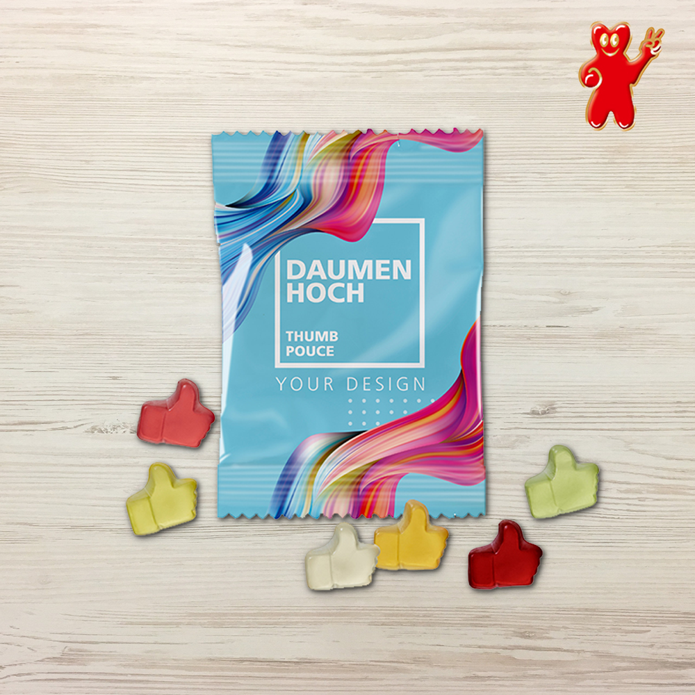 Fabriquées à partir de concentré de jus de fruits et d’arômes naturels, ces bonbons en frome de pouce comprennent une variété de saveurs pour satisfaire toutes les papilles. Vous pouvez concevoir votre propre emballage en ajoutant votre logo pour les rendre encore meilleurs ! Convient aux enfants et parfait pour les événements promotionnels.