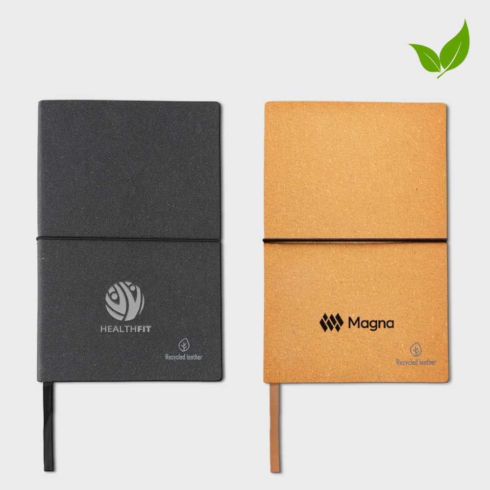 Notez toutes vos notes et vos idées créatives avec le Carnet de notes A5 en cuir recyclé aspect naturel de BDX Print. Élégant et doté d’une finition naturelle et discrète, c’est le support idéal pour votre création personnalisée. Vous pouvez choisir entre une impression en une couleur ou une gravure, vous trouverez l’option idéale pour votre marque. Le Carnet de notes A5 en cuir recyclé aspect naturel est livré avec 80 feuilles/160 pages lignées de couleur crème et de 75 grammes de papier recyclé, ce qui laisse suffisamment de place pour toutes vos notes importantes. Il est également doté d’une bande élastique pour que tout soit bien en ordre.