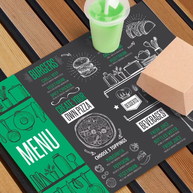 - Promotion de Marque : Imprimez vos délicieux repas, vos offres spéciales ou même des jeux divertissants pour vos invités, et promouvez votre marque de manière subtile mais efficace à chaque repas.