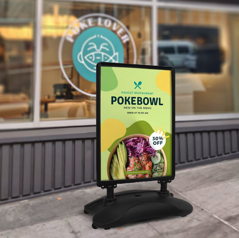 - Personnalisation Facile : Personnalisez vos affiches pour promouvoir vos offres, services ou événements. Le stop-trottoir double face offre une visibilité optimale des deux côtés de la rue, attirant l’attention des passants dans les deux sens.